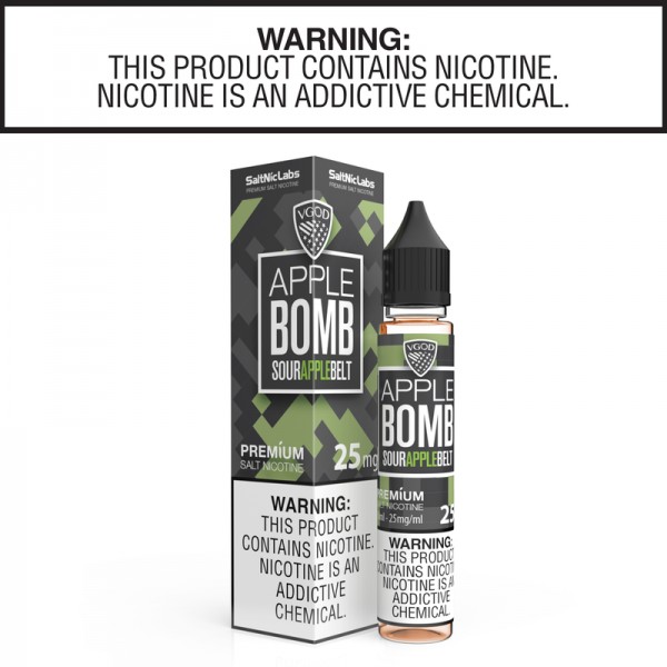 Product Description Apple Bomb by VGOD Salt Nic Collection 30mlApple Bomb by VGOD Salt Nic Collection 30ml Salt Nicotine ReviewApple Bomb by VGOD Salt Nic Collection takes care of all of your candy-flavored needs. Apple Bomb by VGOD Salt Nic Collection will have your taste buds jumping off the walls..